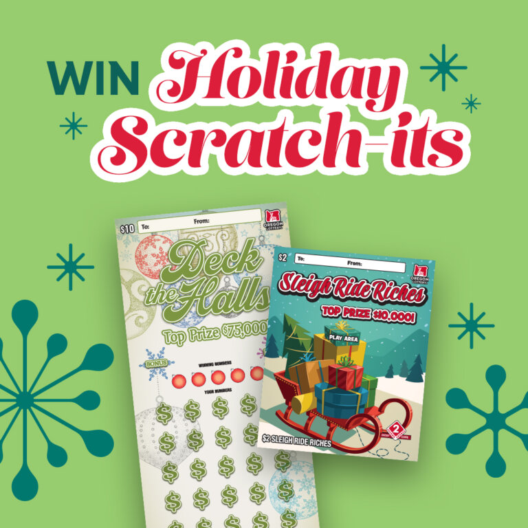 Winning the lottery isn’t always about dollars. Sometimes it’s about winning really great stuff! We’re all about drawings for prizes like free Scratch-its, tickets for sporting events, or all kinds of Oregon Lottery loot. Want to join in? Sign up for our emails (below) and follow us on social media to stay in touch with us. Let the fun begin!