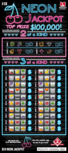 There’s just something nostalgic about that flicker and glow of a neon sign. The bright lights of a bygone era and the anticipation of some casino thrills. That’s the Neon Jackpot for you, the thrill of potentially uncovering that $100,000 top prize mixed with the retro appeal of neon and casinos of yesteryear. All it takes is $10 for you to take your shot at the Neon Jackpot.More quick facts