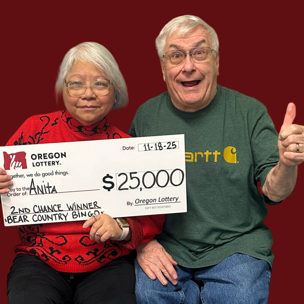 Then, months later, she received the email — she was the winner! Anita and Thomas made the trip to Salem to claim their grizzly-sized win and their large check! A generous person, she plans to share some of her $25,000 win with her family in the Philippines. It pays to enter those non-winning tickets, because every ticket has claws for a comeback!