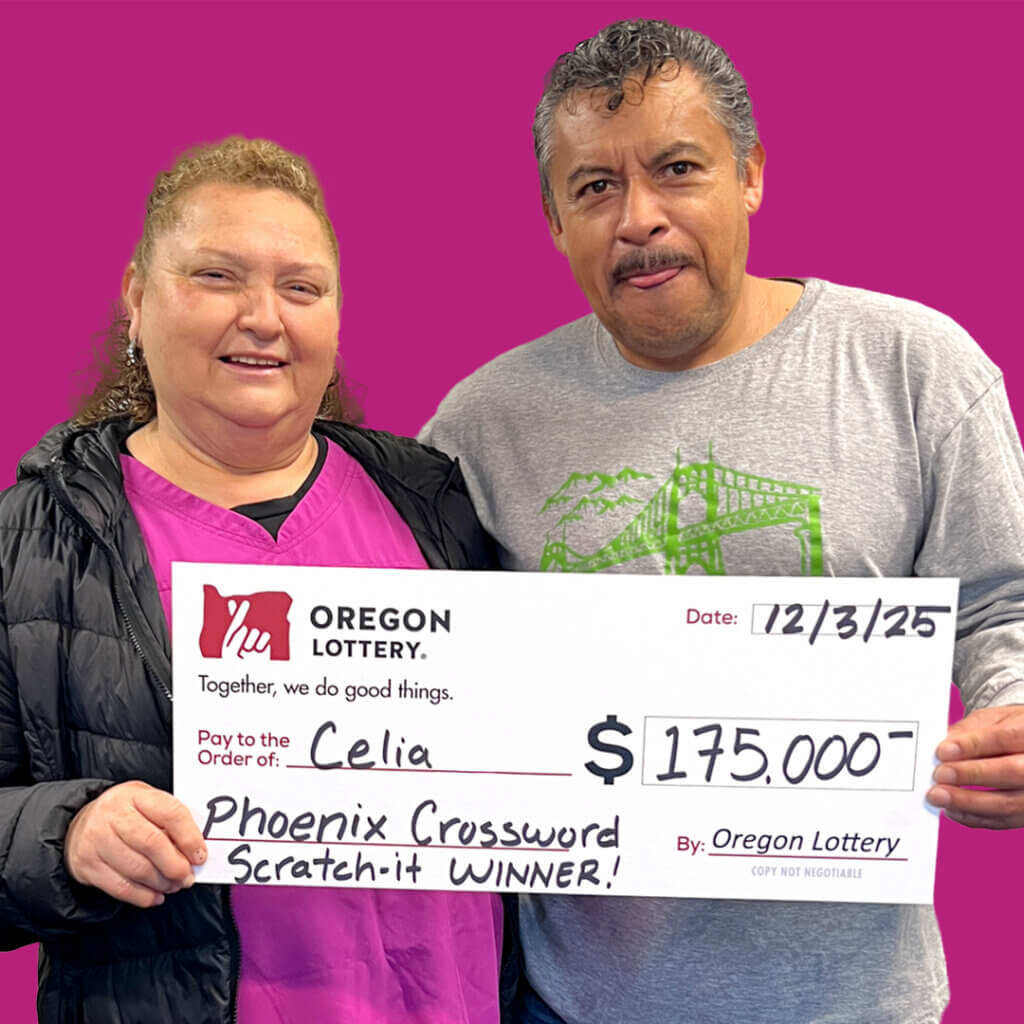 Sus oraciones fueron escuchadas cuando compró un boleto Scratch-it Phoenix Crossword en City Foods Mart en Portland, obteniendo el premio mayor de $175,000. Celia y Arturo planean finalizar la compra de su casa y pasar una Navidad Feliz y un próspero Año Nuevo!